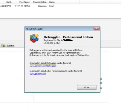 Peale paigaldamist navigeeri Defraggleris: Help - About - Register